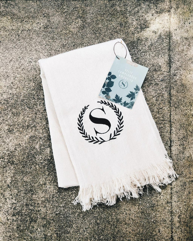 Debes enviarnos un correo con el mensaje para la tarjeta y la inicial o el nombre para el bordado a disenoenna@gmail.com.