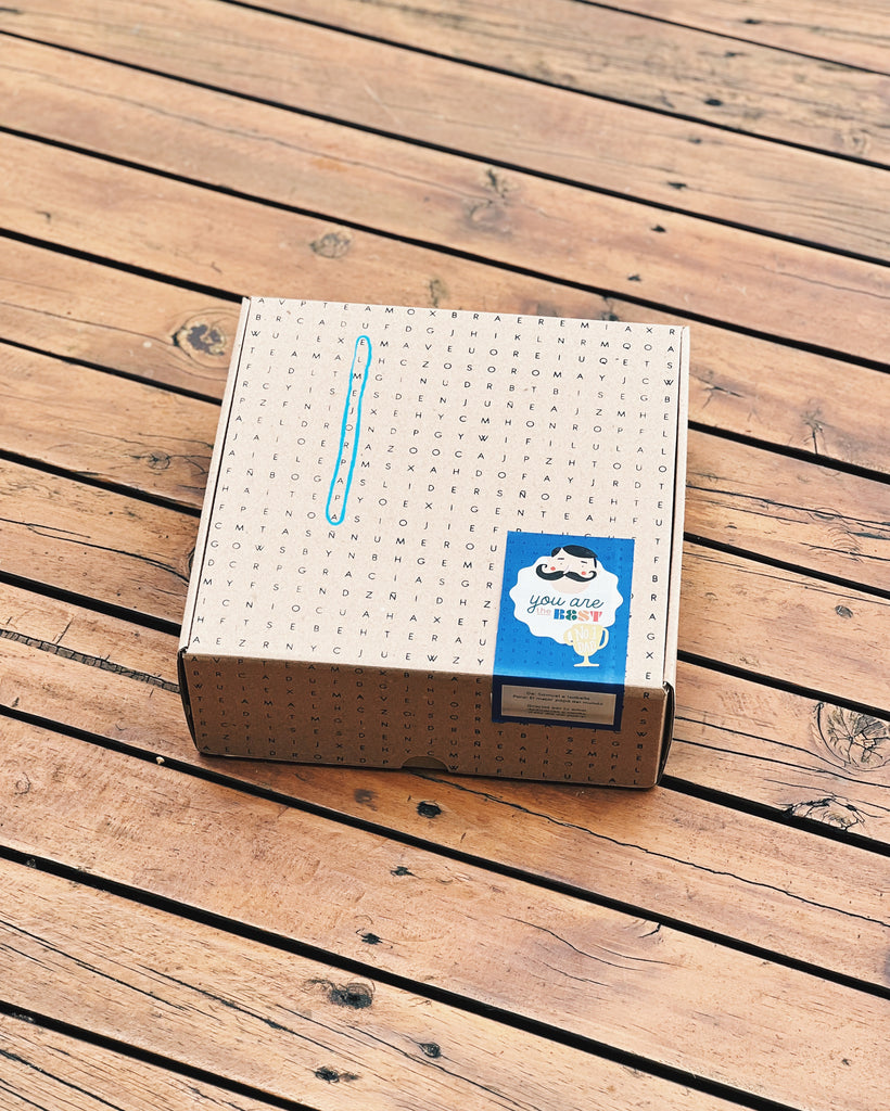 - Caja de empaque con sticker y mensaje corto personalizado.